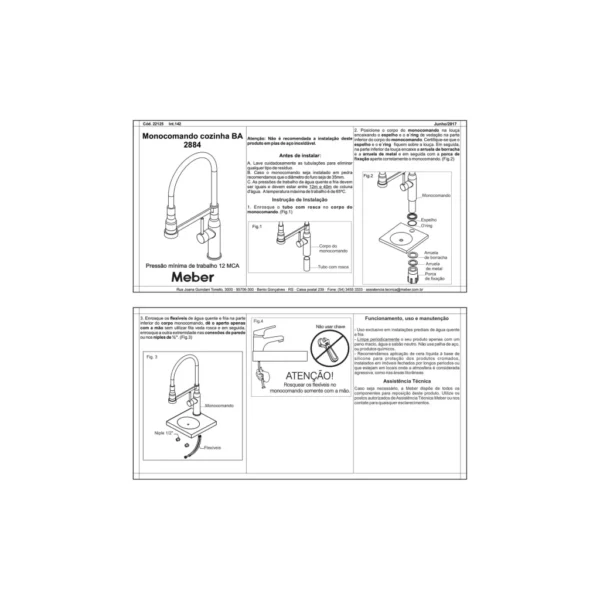 | Conteúdo da Embalagem | Monocomando e kit de fixação |