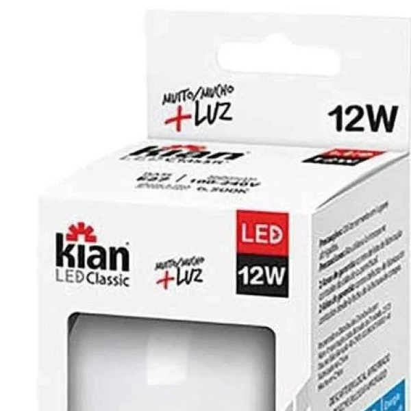 Lampada Led 12w 25.000h 1080lm 6500k Kian. Descrição Técnica:. Código: 10060. Base: E27. Modelo: A60. Potência: 12W. Equivalência: Incandescente – 75W CFL – 20W. Temperatura de Cor: 6.500K – Branca Fria. Fluxo Luminoso: 1080lm. IRC: 80. Economia até: 90% de energia. Vida Útil: 25.000h. Multitensão: 100-240v. Tempo de garantia: 3 meses. ** Preço do produto em PC ** Especificações