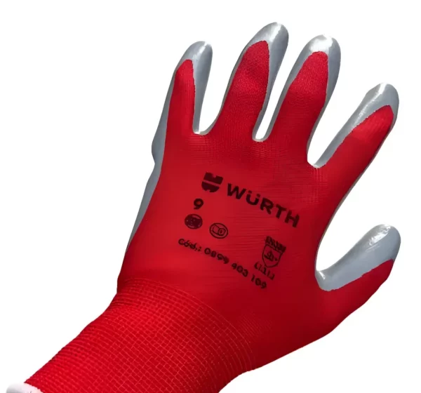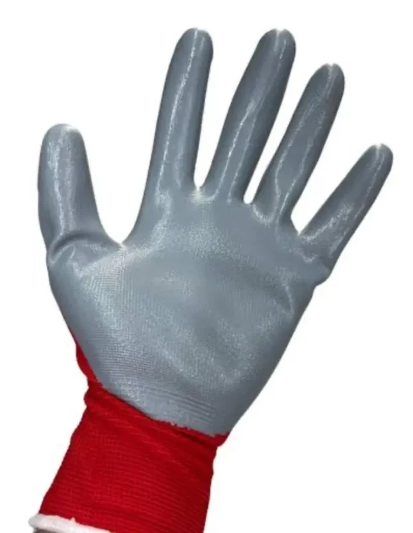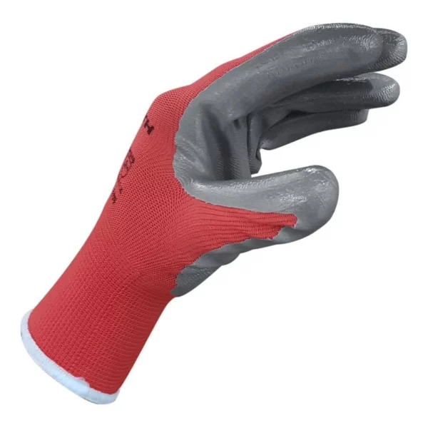 Luva sintética em malha de poliéster na cor vermelha com revestimento nitrílico na palma e nos dedos, punho em malha elástica. Oferece conforto e flexibilidade nas operações onde exijam agarre e tato. Pode ter contato com óleo e graxa.