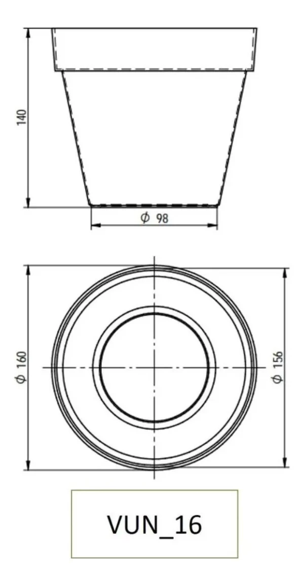 O vaso possui dimensões de 16 cm de largura e comprimento, e 2,51 cm de altura, sendo leve e fácil de manusear.