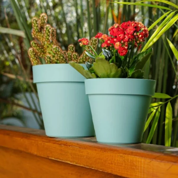 Feito de cimento, o vaso oferece durabilidade e resistência às intempéries, além de um design que se adapta a diferentes estilos de decoração.